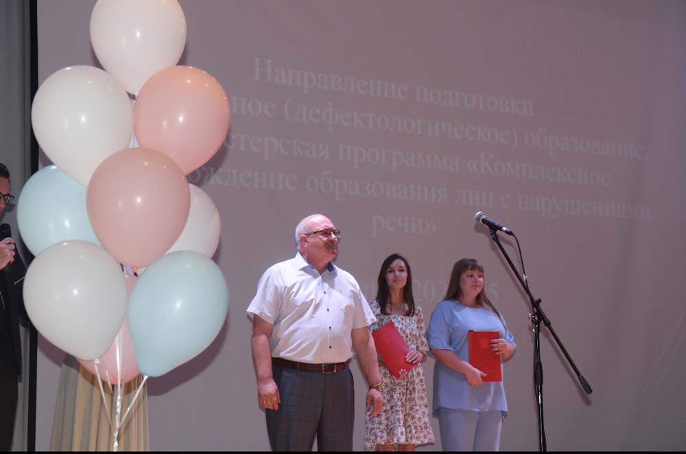 Декан факультета ДН и СО педагогического института, кандидат биологических наук, доцент Алексей Ковтуненко вручил дипломы магистрам по направлению подготовки «Специальное (дефектологическое) образование» и бакалаврам по направлениям подготовки «Педагогическое образование» (профили «Начальное образование и иностранный язык» и «Дошкольное и начальное образование»), «Специальное дефектологическое образование» и «Логопедия».