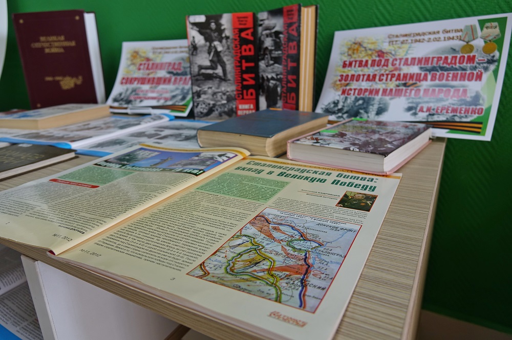 В научной библиотеке имени Н. Н. Страхова открылась книжная выставка, посвящённая 80-летию со дня начала Сталинградской битвы.