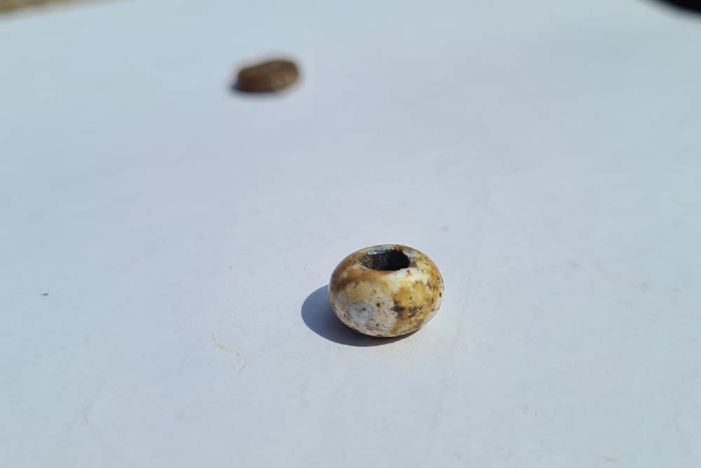 – Интересным оказалось помещение № 12 жилого комплекса. Можно предположить, что оно выполняло функции домашней керамической мастерской. В пользу этого свидетельствуют остатки печи для обжига керамики, скопление не обожженных ткацких грузиков у печи (7 штук), практически целый лепной светильник, несколько обожжённых грузиков, большое количество фрагментов лепной керамики. В пользу интенсивного использования печи в этом помещении свидетельствуют выявленные три уровня пола, с золистыми отложениями на каждом из них. Кстати, при зачистке одного из уровней пола были обнаружены две бусинки. Одна бусинка была изготовлена из янтаря, а другая стеклянная, – рассказал Сергей Прокопенко.