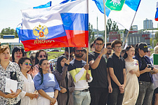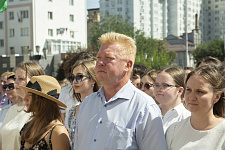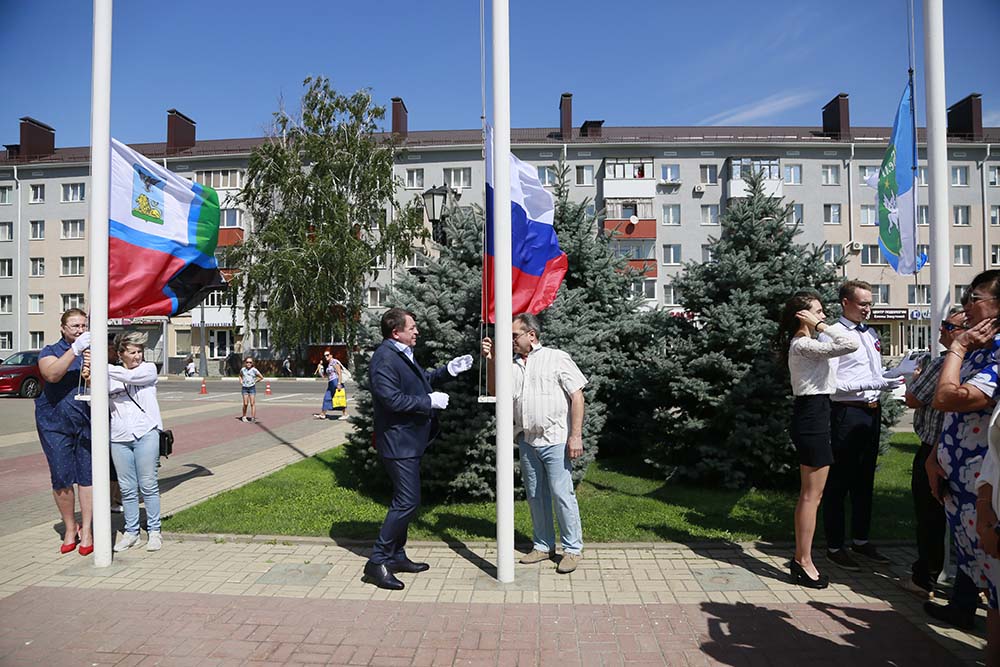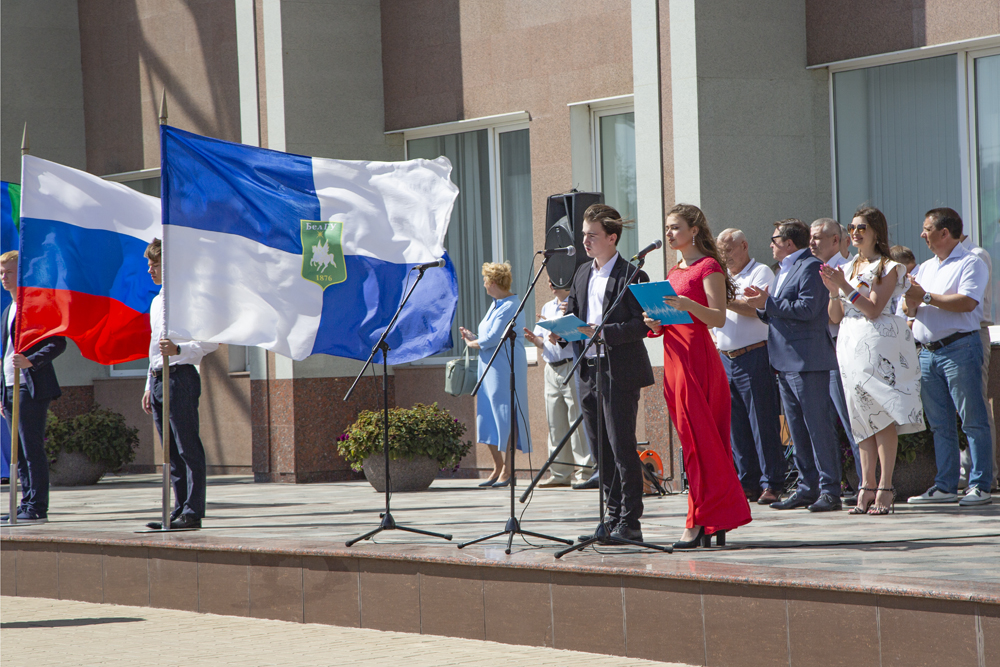 Главной частью мероприятия стало поднятие на университетской площади флагов Российской Федерации, Белгородской области и НИУ «БелГУ», участие в котором приняли Олег Полухин, директор Центра гражданско-патриотического воспитания Инна Кузнецова и студенты-первокурсники, которые в этом году окончили школу с золотой медалью и поступили в университет.