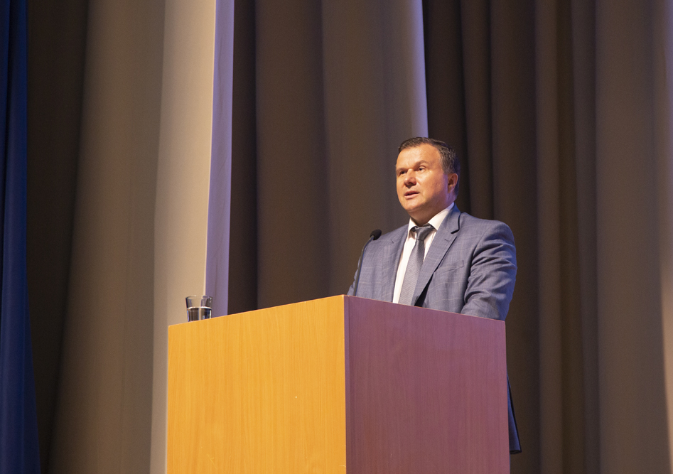 С докладом об итогах работы НИУ «БелГУ» в 2021-2022 учебном году и приоритетных направлениях образовательной, научной, международной и воспитательной деятельности в новом учебном году выступил ректор, профессор Олег Полухин.