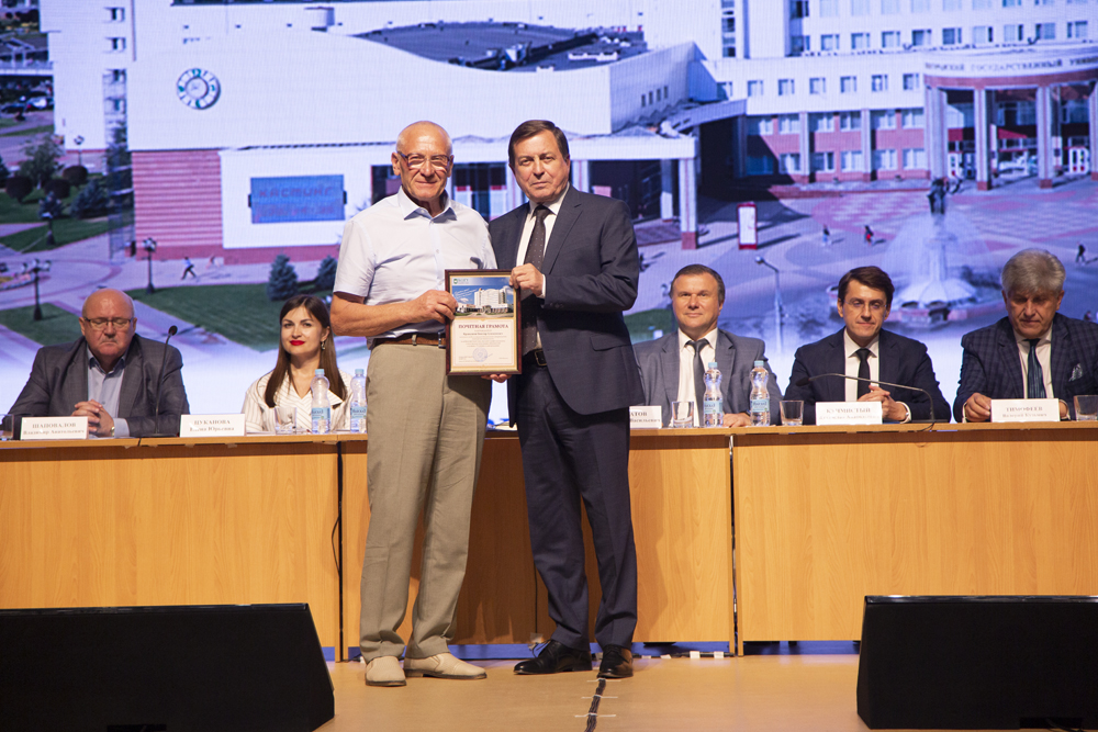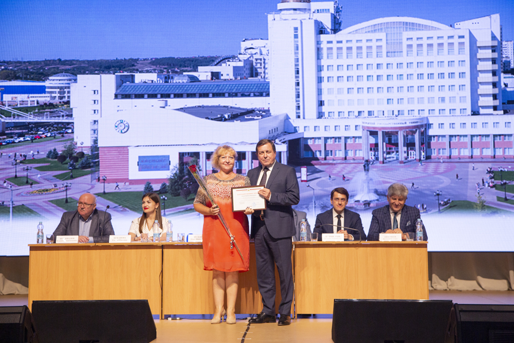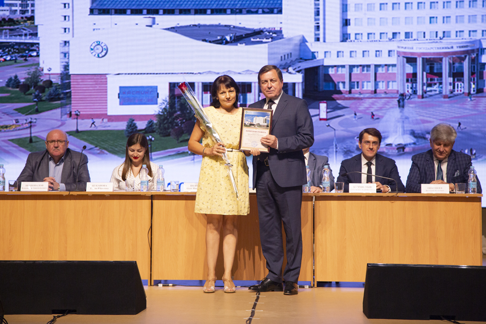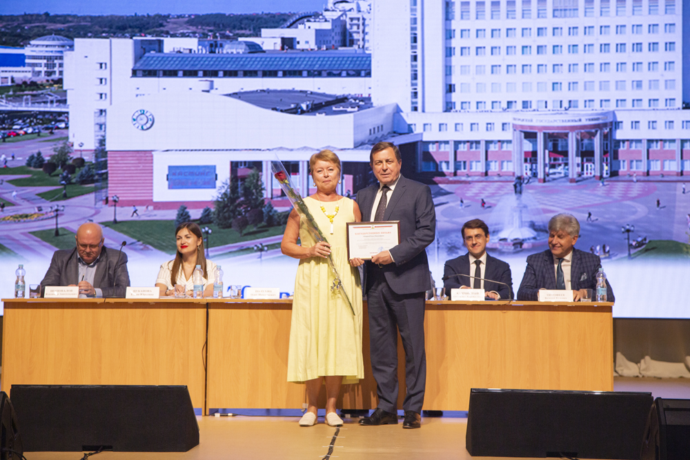 В завершение конференции по традиции состоялось награждение лучших представителей университета. Так, проректор по комплексной безопасности и развитию имущественного комплекса НИУ «БелГУ» Николай Голубоцких удостоен медали «За безупречный труд и отличие», профессору кафедры общей химии института фармации, химии и биологии Александру Везенцеву присвоено звание «Почетный работник науки и высоких технологий Российской Федерации». Почётные грамоты, благодарности и благодарственные письма Минобрнауки РФ, Белгородской областной Думы, Администрации г. Белгорода, Министерств образования, спорта, здравоохранения Белгородской области, профильного профсоюза, а также НИУ «БелГУ» были вручены представителям вуза.