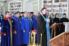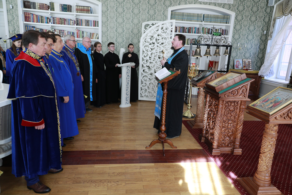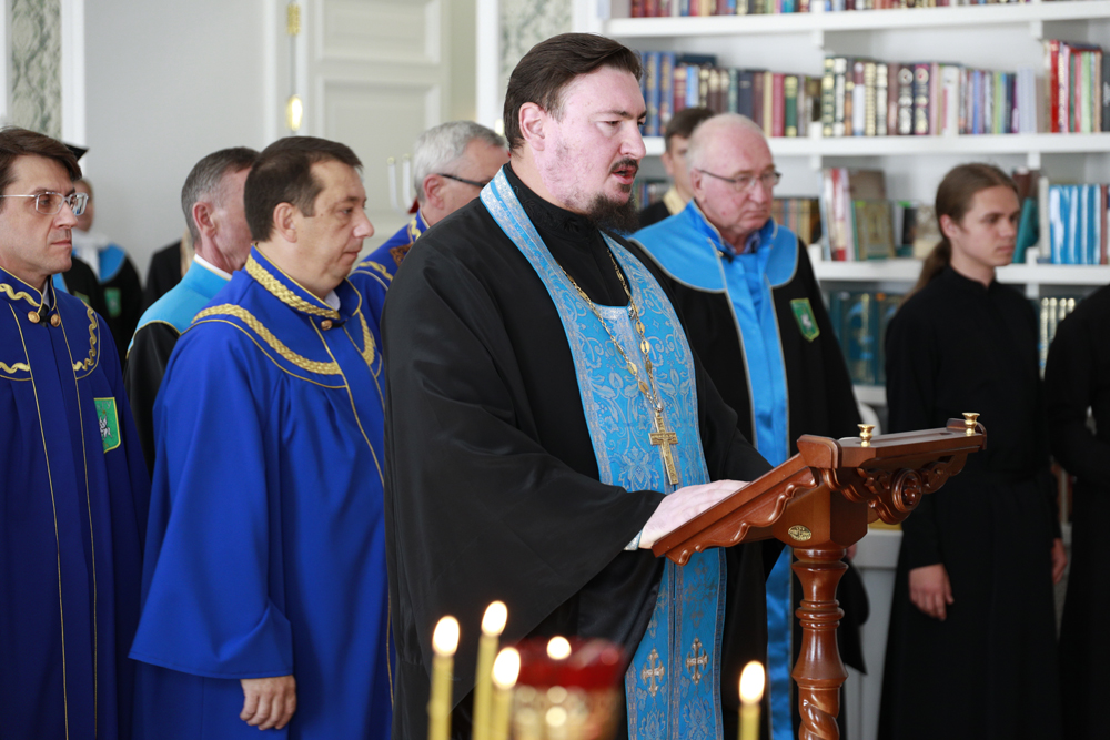 С началом учебного года первокурсников поздравил протоиерей Юлиан Гоголюк, благословив вчерашних абитуриентов иконой «Прибавление ума», которая способствует успешной учёбе и даёт сил для выполнения сложной работы, научных проектов.