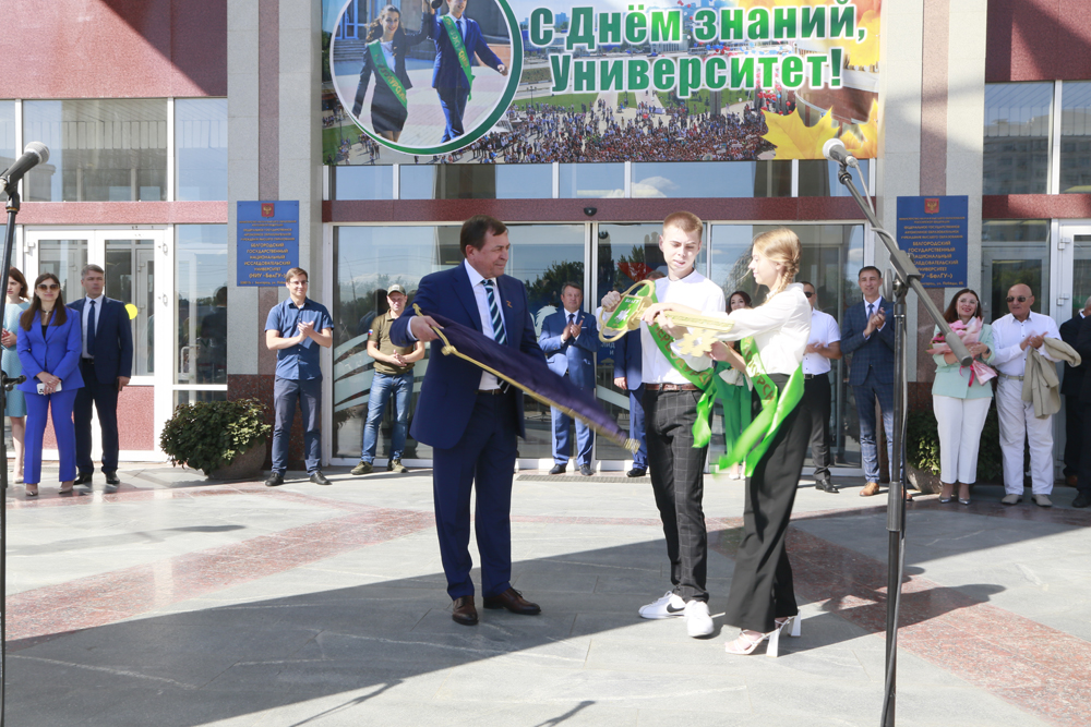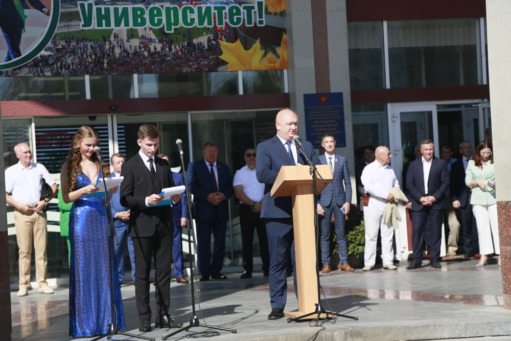 Коллектив и студентов вуза с началом учебного года поздравили почётные гости. Обратившись к присутствующим, депутат Государственной Думы Федерального Собрания РФ Валерий Скруг подчеркнул, что Белгородский госуниверситет является символом Белгородской области.