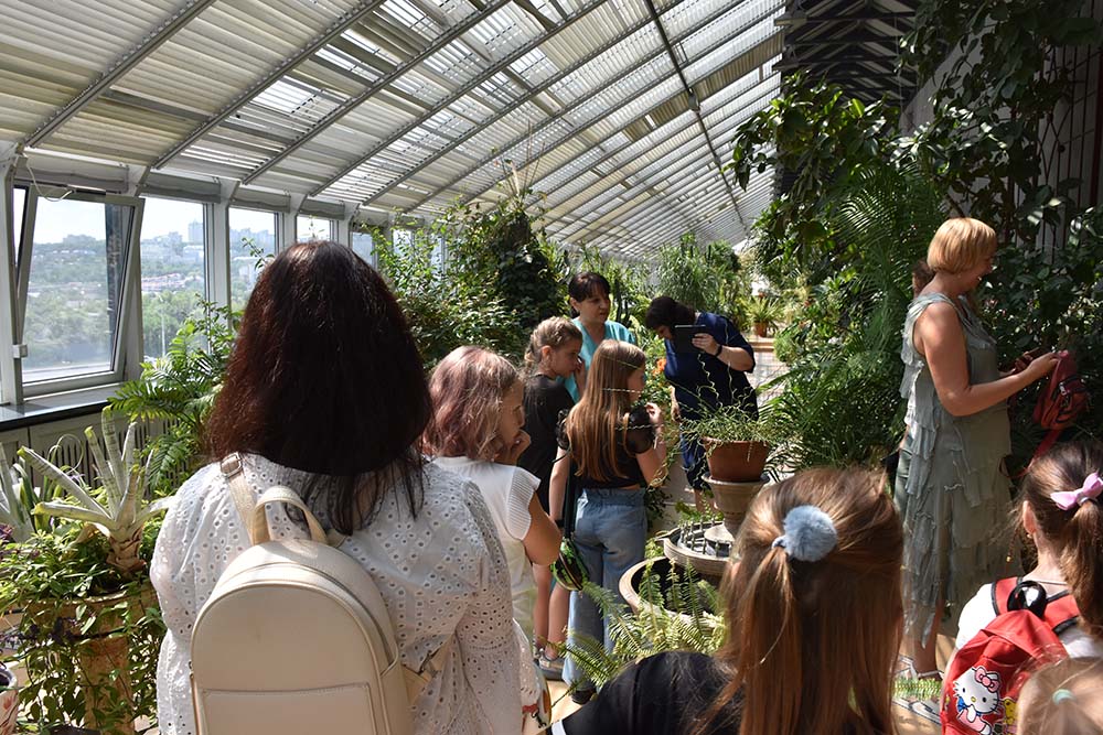 Как рассказала заведующая сектором оранжерейных растений управления ландшафтных работ и обслуживания территорий ботанического сада Ирина Архипова, зимний сад организовывался как отдел, занимающийся выращиванием интродуцентов в условиях закрытого грунта. В подборе видов и составлении проекта озеленения научную помощь оказал коллектив сотрудников Донецкого Ботанического сада ГБС Украины: первые 94 вида растений были высажены именно из их коллекции.