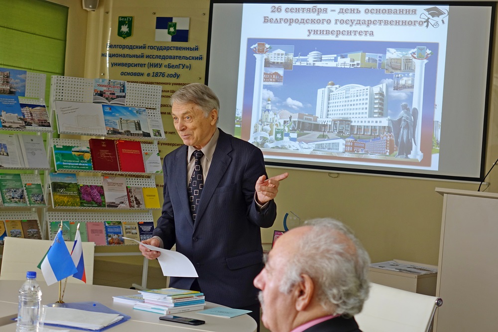 Гостями тематического вечера стали председатель Совета ветеранов НИУ «БелГУ» Юрий Питинов, Лариса Кривцова, Нина Курдяева и Николай Жалдак. Ведущая мероприятия – главный библиотекарь библиотеки вуза Надежда Малыгина рассказала первокурсникам об истории университета и продемонстрировала видеопрезентацию «НИУ «БелГУ» – 146 лет в истории страны».