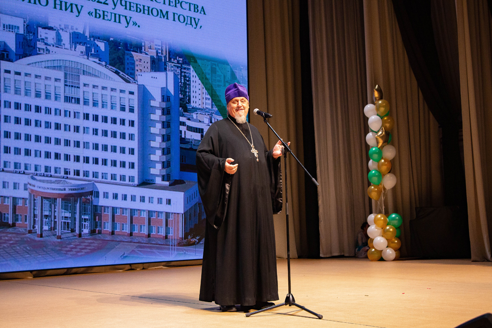 Протоиерей Олег Кобец в своём поздравлении отметил местоположение университета под своеобразным духовным куполом, определившим вектор его развития.