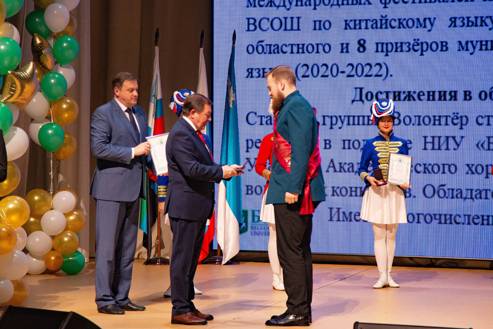 – Главным и основным ресурсом, нашим достоянием являются студенты, преподаватели, учёные, управленцы, сотрудники. Все вы, дорогие друзья! Прошедший учебный год был непростым. Непрекращающаяся пандемия COVID – 19, работа в условиях нарастающего санкционного давления требовали от нас полной концентрации, мобилизации ресурсов и командной, сплочённой работы. Спасибо вам за проявленные волю, терпение и исключительное трудолюбие, – поблагодарил Олег Николаевич и вручил заслуженные награды коллегам, отличившимся в различных областях деятельности и выпускникам НИУ «БелГУ» 2022 года.