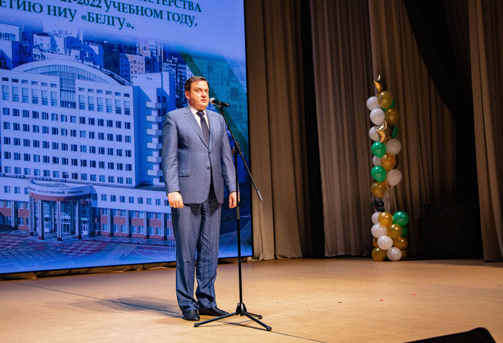 От имени губернатора Белгородской области Вячеслава Гладкова к коллективу университета обратился Андрей Милёхин.
