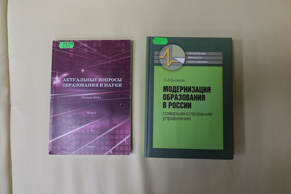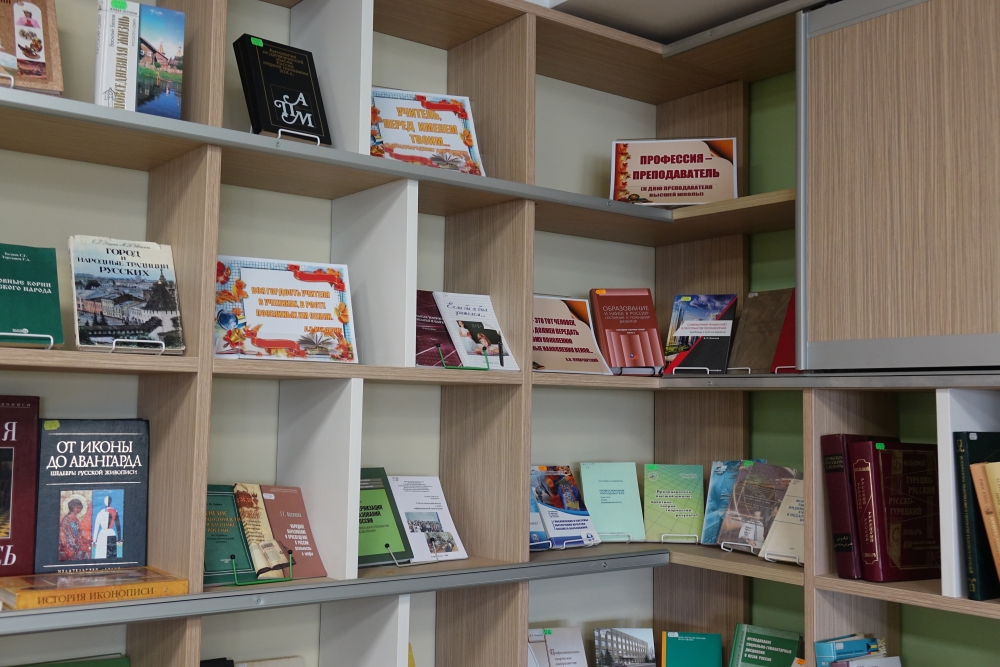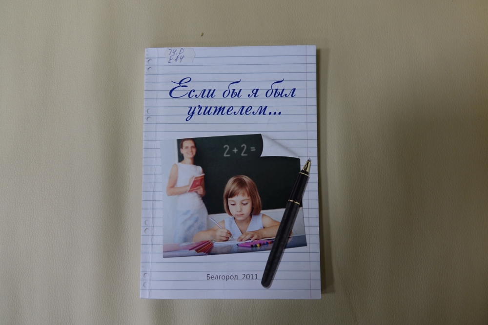 Особое место занимает полка с книгами, изданными в НИУ «БелГУ». «Если бы я был учителем» — это сборник педагогических эссе школьников и студентов, издание было выпущено при поддержке педагогического института НИУ «БелГУ». Там же представлены книги — «Учитель начальной школы в эпоху информационной цивилизации», выпущенная в старооскольском филиале НИУ «БелГУ» и «Деятельность учителей базовой школы», изданная в МОУ СОШ №2 в городе Новый Оскол.