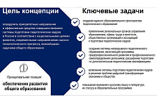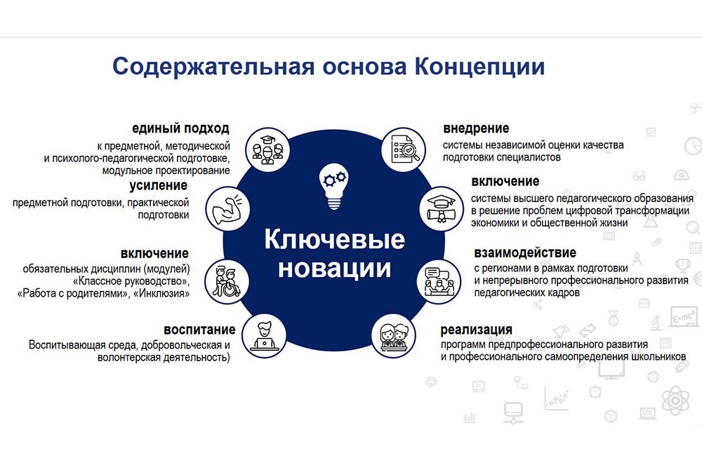 Как отметила член-корреспондента РАО, научный руководитель Центра развития педагогического образования РАО, директор института педагогики СПбГУ, доктор педагогических наук, профессор Елена Казакова, концепция основана на подготовке учителя для будущего поколения России. Её цель – определить приоритетные направления и эффективные средства совершенствования системы подготовки кадров в соответствии с национальными приоритетами.