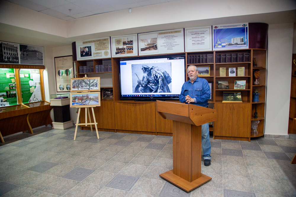 В завершении лекции Александр Крылов передал в дар музею истории университета 10 своих работ с видами г. Белгорода и других памятных исторических мест России.
