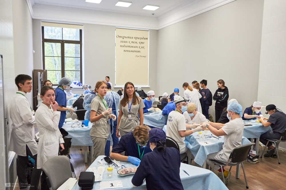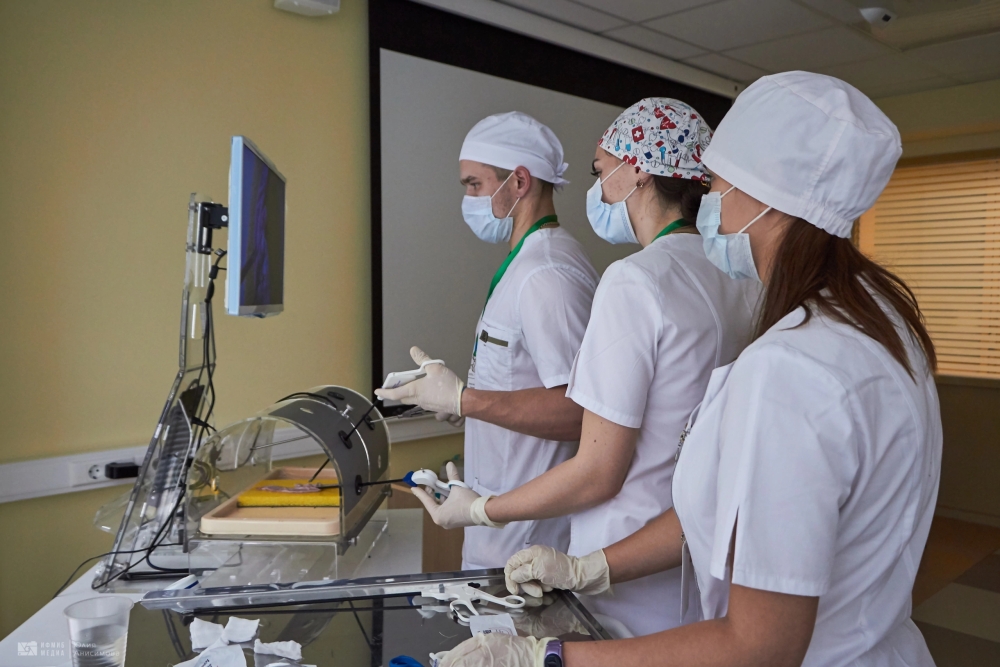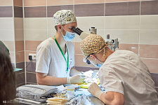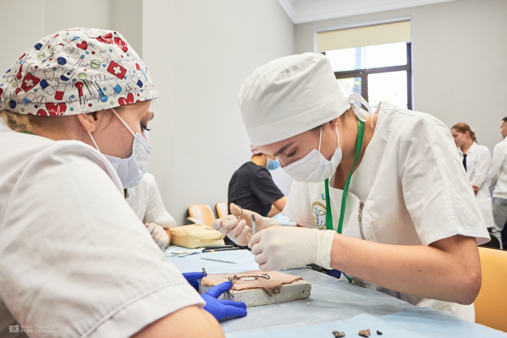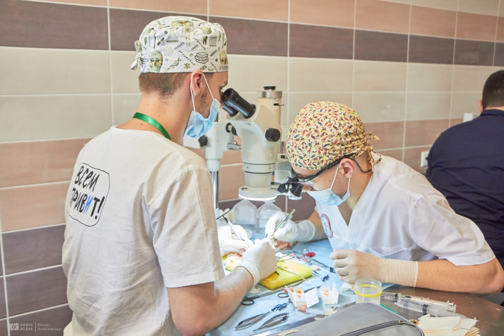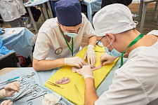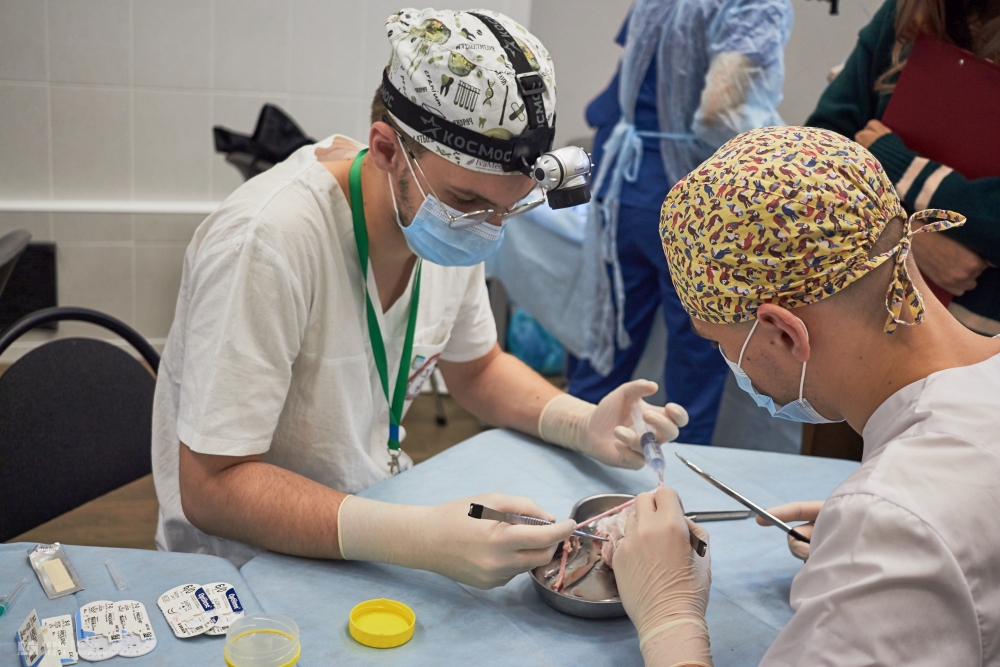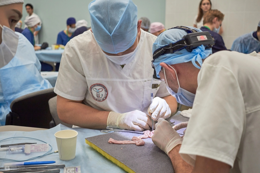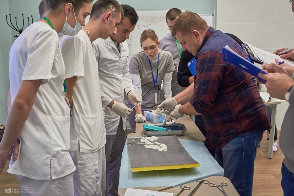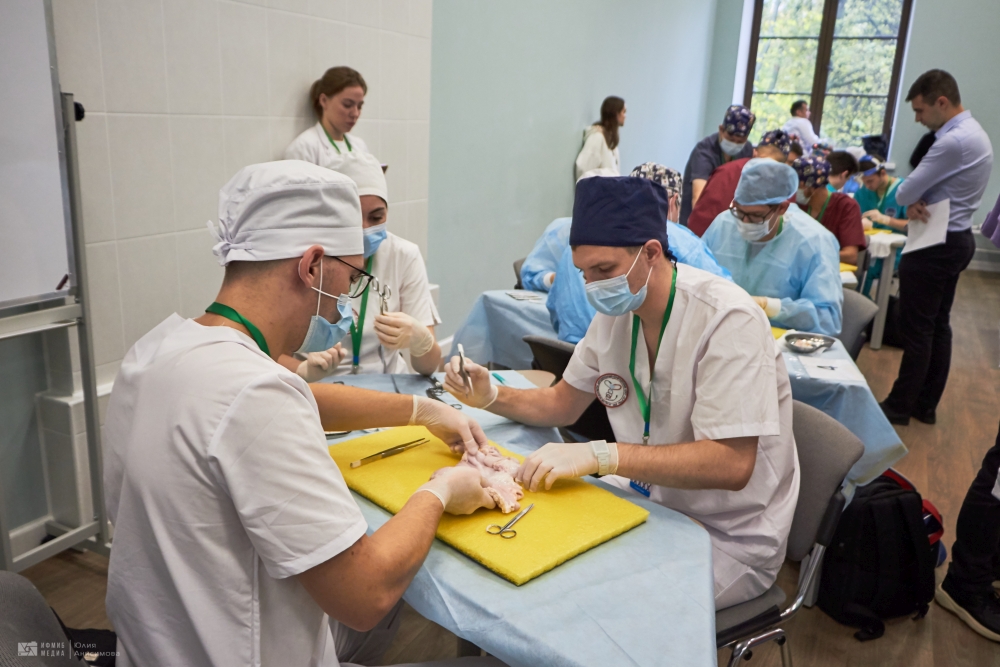 Во второй день обучающиеся проверяли свои знания и навыки в области хирургии. Среди испытаний были вязание хирургических узлов, сердечно-сосудистая хирургия – аорто-коронарное шунтирование, абдоминальная хирургия – резекция желудка, эндовидеохирургия – гемиколэктомия, шов сухожилия, пластическая хирургия – закрытие круглого дефекта по методу Pick, микрохирургия – микрососудистый анастомоз, урология – операция Штудера.