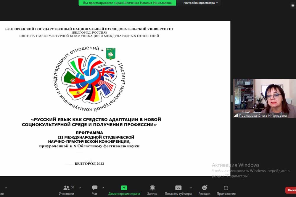 С приветственным словом к участникам обратились проректор по международному сотрудничеству НИУ «БелГУ» Владислав Кучмистый, директор ИМКиМО, профессор Ольга Прохорова, доцент кафедры русского языка, профессионально-речевой и межкультурной коммуникации, координатор конференции Лиллия Петрова.