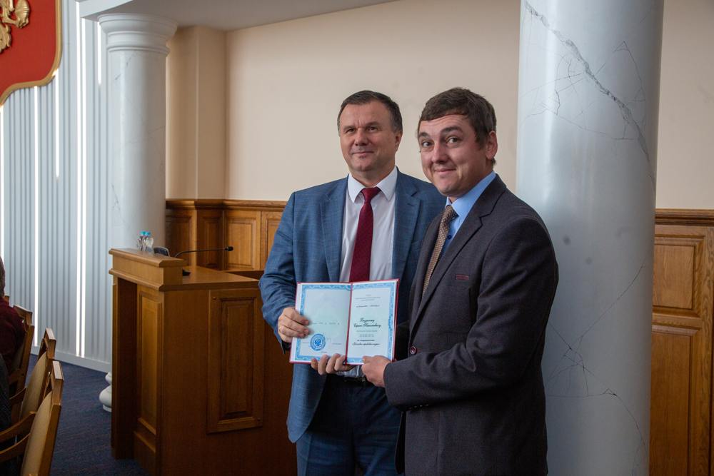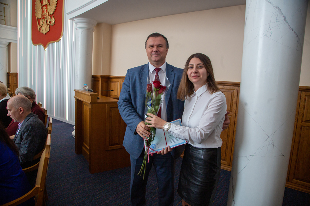 Торжественным моментом мероприятия стало вручение аттестатов доцентам кафедры уголовного права и процесса НИУ «БелГУ» Елене Купряшиной и Сергею Безуглому, а также доценту кафедры конституционного и международного права Анне Безуглой. Аттестаты вручили директор юридического института НИУ «БелГУ» Евгений Тонков и проректор по образовательной деятельности вуза Александр Маматов.