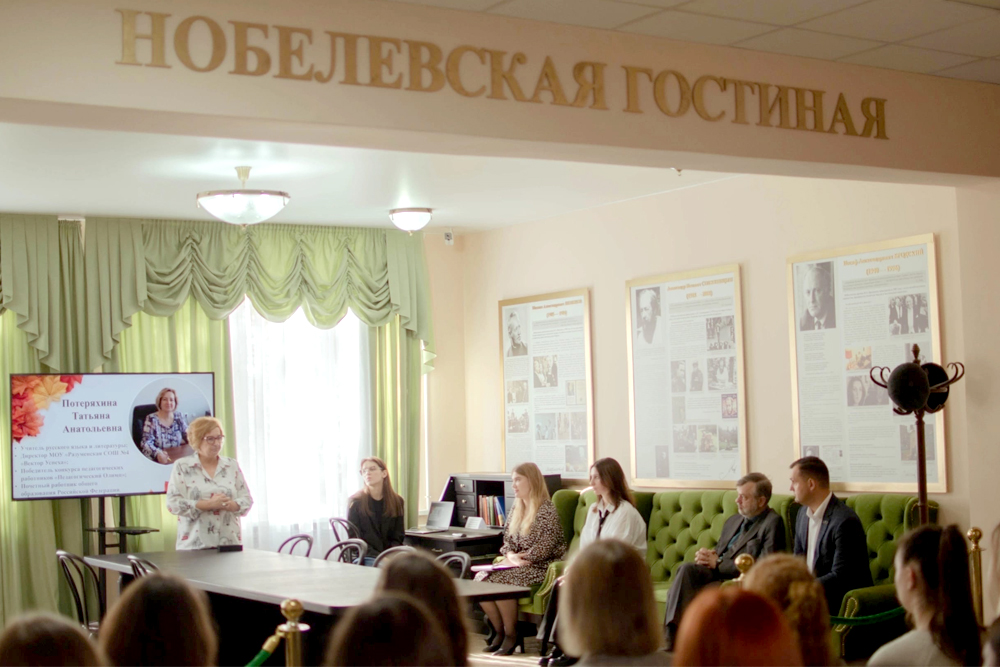 Вдохновляющая встреча в «Нобелевской гостиной» с учителем русского языка и литературы, директором Разуменской средней общеобразовательной школы №4 «Вектор Успеха»», победителем конкурса педагогических работников «Педагогический Олимп», Почётным работником общего образования Российской Федерации Татьяной Потеряхиной была посвящена профессии педагога. Её инициаторами выступили преподаватели историко-филологического факультета Элла Левина и Гаяне Мальцева. Поддержку в организации встречи оказал профсоюзный комитет вуза под руководством Валерия Тимофеева.