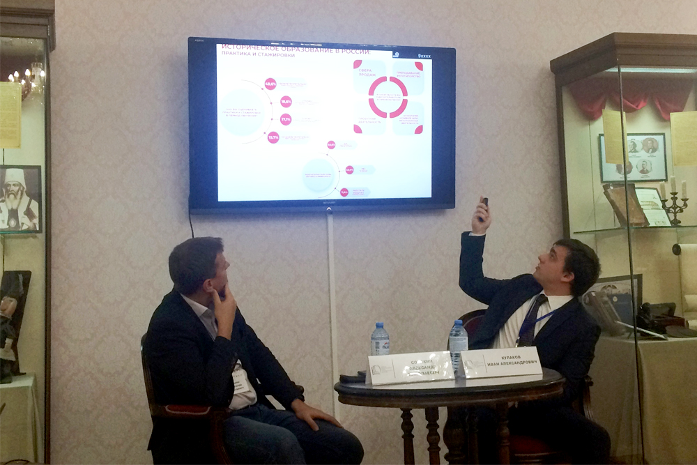 На полях мероприятия состоялось заседание молодёжного клуба Российского исторического общества, участники которого поделились своим опытом организации изучения дисциплины «История России» для неисторических специальностей и направлений подготовки высшего образования. Мнение подавляющего большинства оказалось практически единым – нецелесообразно просто повторять школьный курс истории России со студентами. С ним согласен и ассистент кафедры всеобщей истории Белгородского госуниверситета.