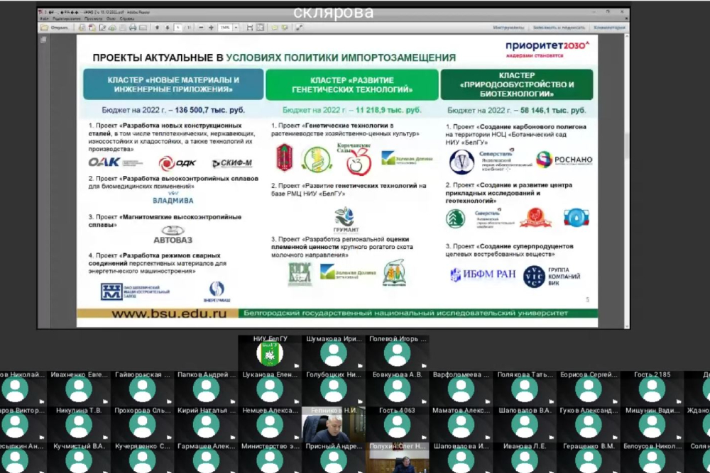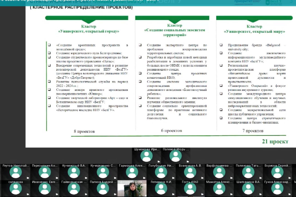 Результаты работы более 50 проектных команд за 9 месяцев озвучили на заседании управляющего совета по реализации программ стратегического развития НИУ «БелГУ».