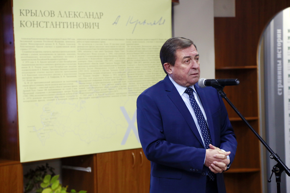 Учёный секретарь Государственного историко-архитектурного и природного музея-заповедника «Изборск», гендиректор АНО «Центр культурных и научных проектов «АРС» Владимир Мельников отметил, что открывшаяся экспозиция является частью выставочного проекта «Рубеж». Картины из изборского музея выставляются в регионах, граничащих с территорией, где проходит специальная военная операция. Знакомя гостей с творчеством академика живописи Александра Крылова, Владимир Леонидович рассказал о рождении практически каждой из представленных на выставке работ.