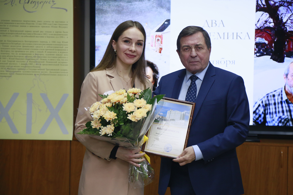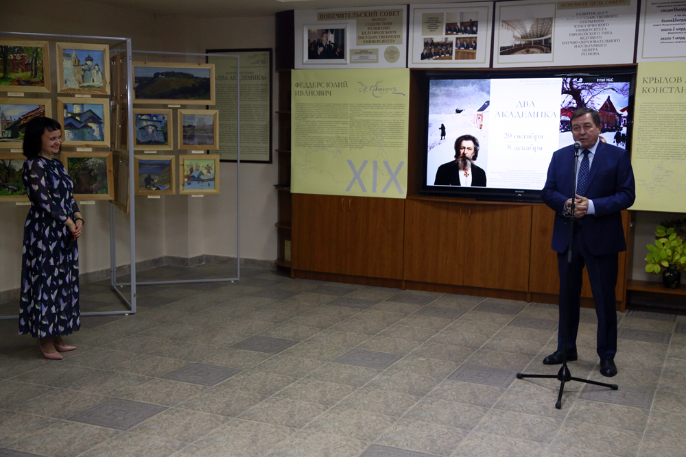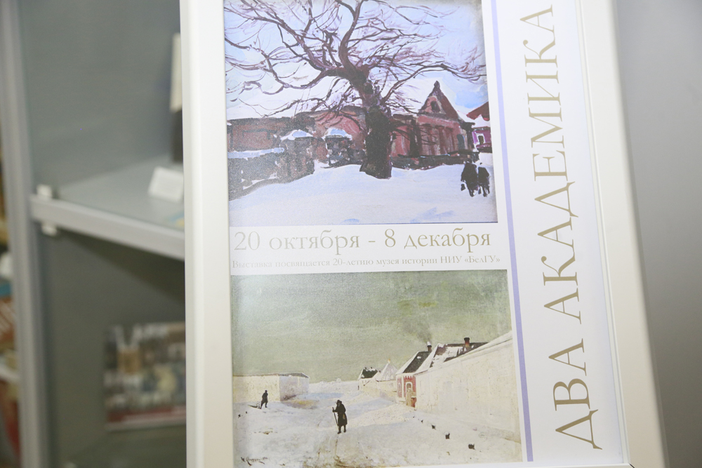 Совместный с Государственным историко-архитектурным и природным музеем-заповедником «Изборск» проект «Два академика» приурочен к 20-летию Музея истории вуза. Как отметила директор музея истории НИУ «БелГУ» Ирина Денисова, уникальность экспозиции в том, что она знакомит посетителей с творчеством единственных известных на сегодняшний день в России академиков живописи, которые запечатлели виды Белгорода и его окрестностей.