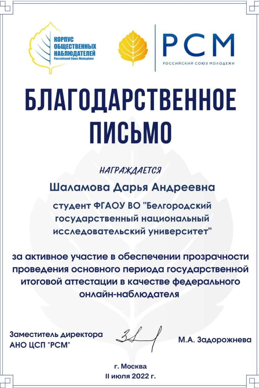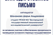 – Одновременно на наблюдение за экзаменами от Белгородского госуниверситета выходили 25 студентов - федеральных онлайн-наблюдателей. Это очень важный и нужный труд, все наблюдатели отмечены благодарственными письмами Российского союза молодёжи, – прокомментировала Олеся Михайловна.