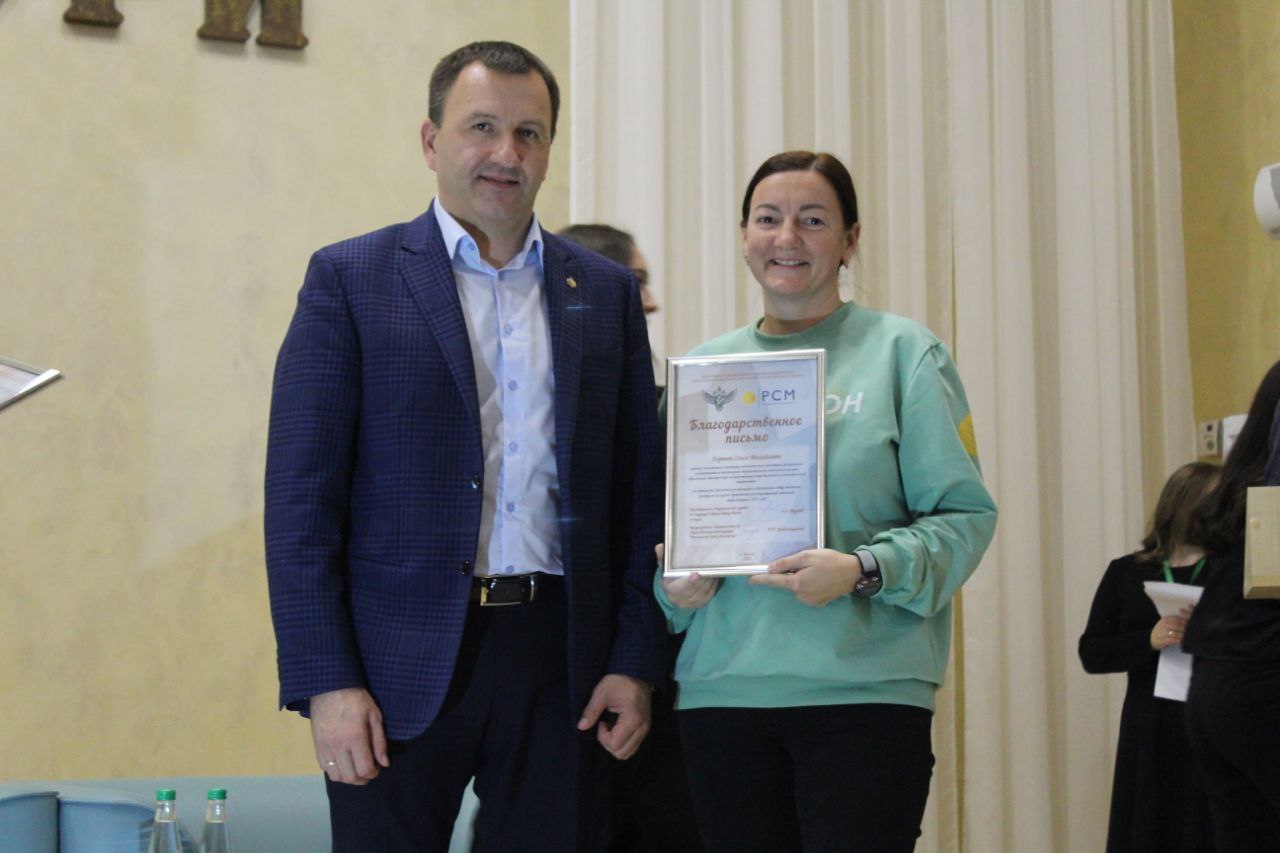 Председатель РСМ вручил Белгородскому госуниверситету в лице Олеси Хоревой Благодарственное письмо федеральной службы по надзору в сфере образования и науки.