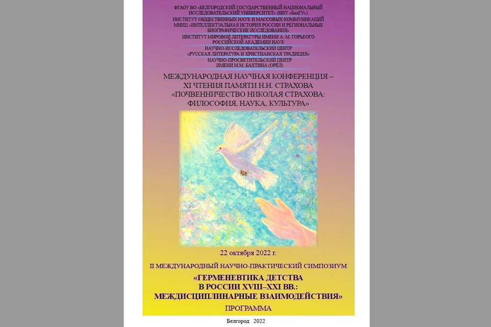 В Международном научно-исследовательском центре «Интеллектуальная история России и региональные биографические исследования» института общественных наук и массовых коммуникаций НИУ «БелГУ» состоялся II Международный научно-практический симпозиум «Герменевтика детства в России XVIII–XXI вв.: междисциплинарные взаимодействия». Онлайн-симпозиум был проведен в сотрудничестве с институтом мировой литературы имени А. М. Горького РАН, научно-исследовательским центром «Русская литература и христианская традиция» и научно-просветительским центром имени М.М. Бахтина.