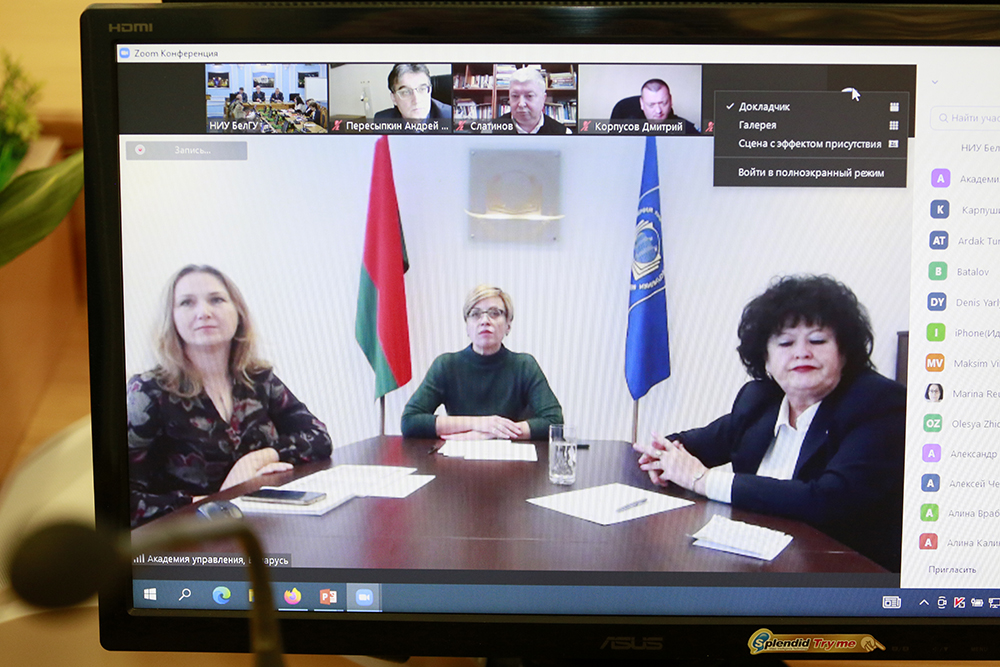 Пленарное заседание началось с выступления доктора политических наук, профессора кафедры государственного управления Института государственной службы Академии Управления при Президенте Республики Беларусь Флюры Храмцовой. В своём выступлении эксперт представила идеологическую матрицу образования и молодежной политики в Республике Беларусь, а также проектно-аксиологические технологии развития молодежной партисипации.