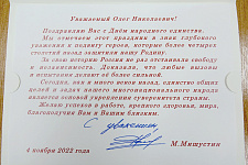 В адрес ректора Белгородского госуниверситета, профессора Олега Полухина пришло поздравление с Днём народного единства от Премьер-министра страны Михаила Мишустина.