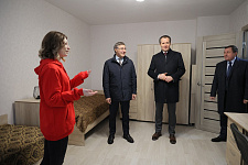 После торжественного перерезания ленточки гости ознакомились с условиями проживания в новом общежитии.