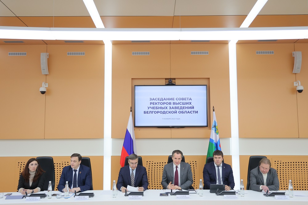 Внеочередное расширенное заседание совета ректоров белгородских вузов с участием главы Министерства науки и высшего образования Валерия Фалькова, губернатора Белгородской области Вячеслава Гладкова и представителей правительства региона состоялось на площадке БГТУ им. В.Г. Шухова.