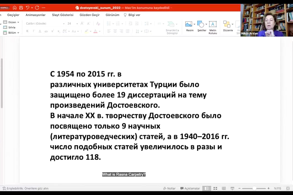 – Мы рады, что можем сотрудничать в данной просветительской культурной деятельности с коллегами из Белгородского государственного университета. В сегодняшней непростой геополитической обстановке мы, представители Турции, поддерживаем своих друзей, россиян, близких нам по духу людей, и надеемся, что просветительская деятельность на территории Турции позволит нам укрепить дружеские связи с носителями великой русской культуры, – подчеркнула председатель Ассоциации.
