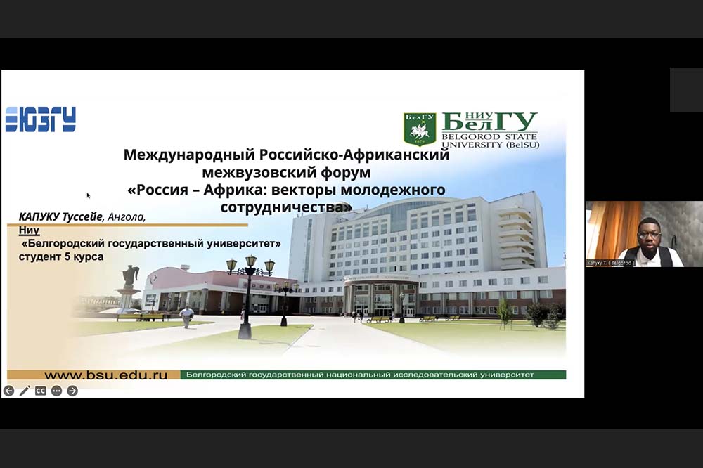 Так, студент медицинского института, стажёр Международного информационного центра НИУ «БелГУ» Гоговор Коми Проспер выступил с докладом о проблемах адаптации африканских врачей по возвращении в родную страну после окончания обучения в России. Представитель африканских студентов в НИУ «БелГУ» Капуку Туссейе рассказал о стратегическом партнёрстве между Анголой и Россией.