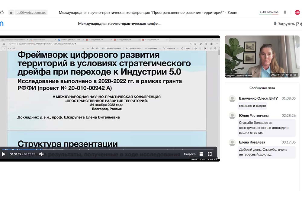 В НИУ «БелГУ» состоялась V Международная научно-практическая конференция «Пространственное развитие территорий», организаторами которой выступили представители кафедры прикладной экономики и экономической безопасности института экономики и управления.