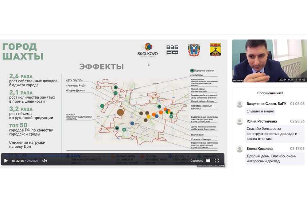 Одна из тем, связанных с новыми формами пространственной организации экономики, касалась Белгорода и Белгородской области. О практических рекомендациях по программе цифровой трансформации города Белгорода рассказал руководитель проектов по информационной безопасности компании «Радиус» Александр Титов. О практико-ориентированном подходе реализации стратегических документов рассказал заместитель главы Администрации города Шахты Денис Дедученко.