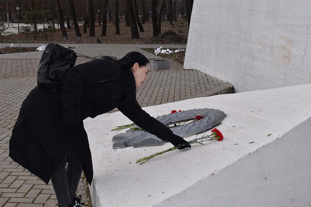 Участники и организаторы мероприятия, директор Центра гражданско-патриотического воспитания обучающихся университета Инна Кузнецова и председатель Профсоюзной организации Валерий Тимофеев возложили цветы к памятнику жертвам фашизма в парке Гагарина и рассказали участникам мероприятия об истории, положившей начало отмечанию памятной даты – Дня Неизвестного Солдата, – напомнив о трагических событиях, происходивших на территории парка, о которых мы не должны никогда забывать.