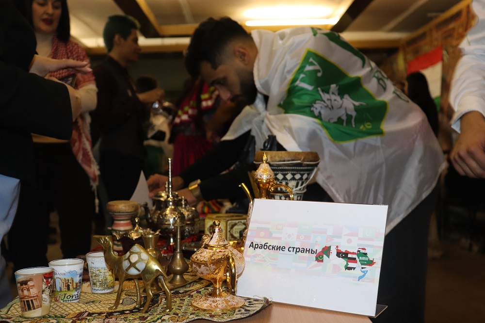 Студенты землячеств арабских стран и Латинской Америки НИУ «БелГУ» подготовили экспозицию для выставки предметов культуры и быта стран мира. Обучающиеся продемонстрировали костюмы, посуду, музыкальные инструменты, произведения искусства и народных промыслов разных стран. Экспозиция включила культуры Бразилии, Гватемалы, Иордании, Ирака, Сирии, Колумбии, Ливана, Палестины, Марокко, Египта, Перу, Сальвадора, Эквадора.