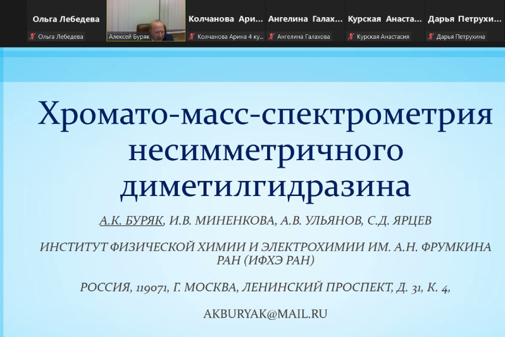 Алексей Буряк подчеркнул, что коллектив Института физической химии и электрохимии им. А.Н. Фрумкина РАН открыт для сотрудничества, и студенты могут обращаться с вопросами даже после окончания изучения дисциплины.