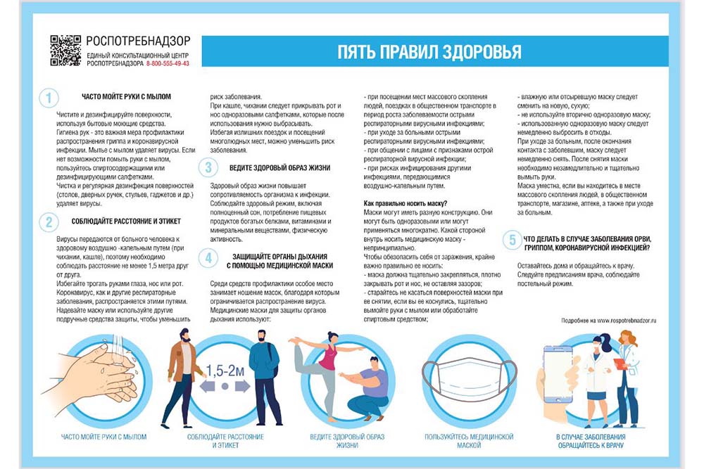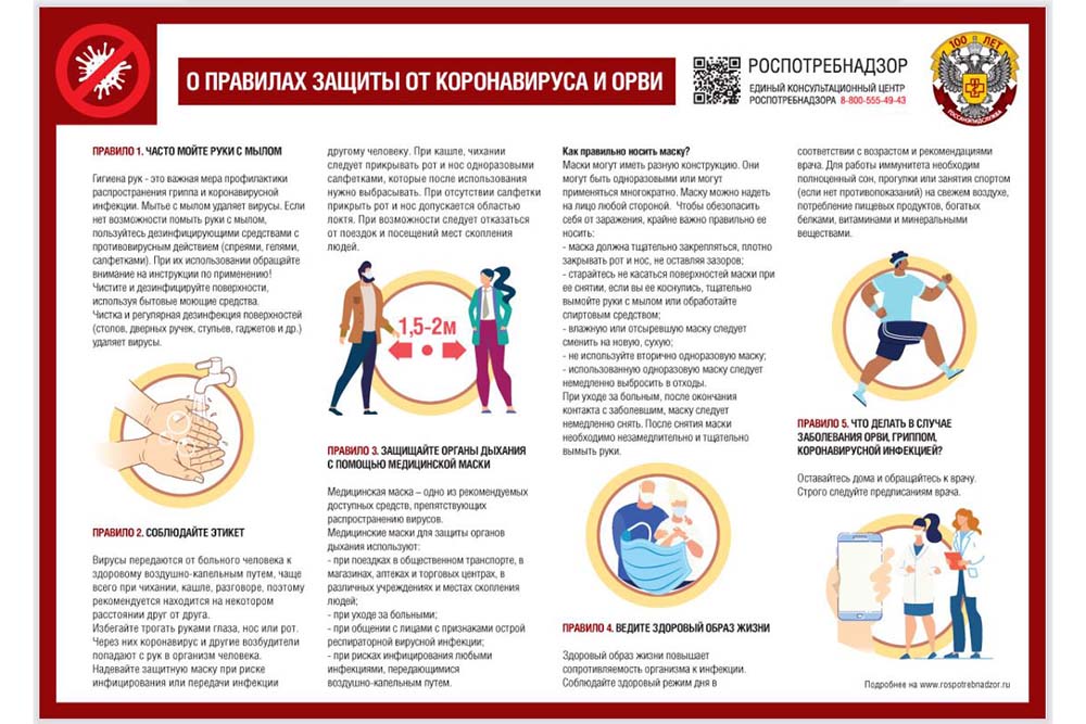 Соблюдайте социальную дистанцию в 1,5 метра. Такое расстояние помогает создать безопасную зону, даже если рядом находящийся человек болен. Увеличить эффективность мер профилактики позволяет ношение медицинской маски. Она должна полностью закрывать органы дыхания, плотно прилегать к лицу со всех сторон и использоваться один раз. Многоразовые маски следует регулярно стирать и гладить утюгом на высокой температуре.