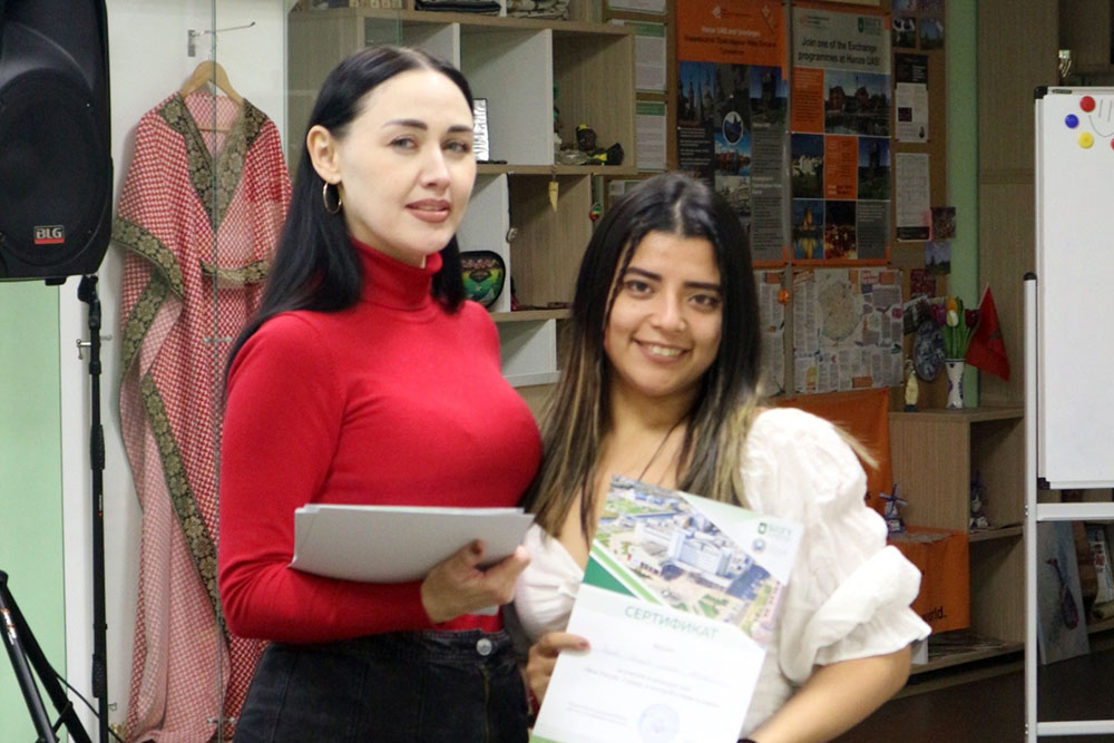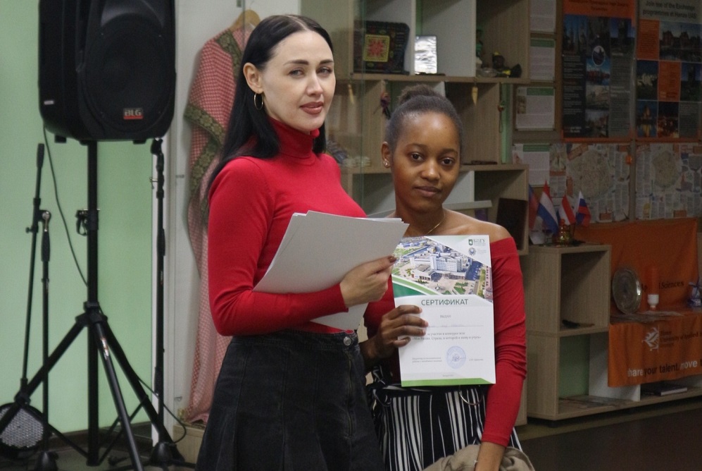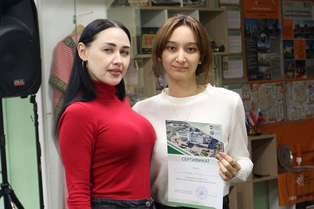 В завершении встречи Кристина Хабарова наградила победителей и призёров конкурса эссе «Моя Россия. Страна, в которой я живу и учусь» – студентов медицинского института, института межкультурной коммуникации и международных отношений, подготовительного факультета.
