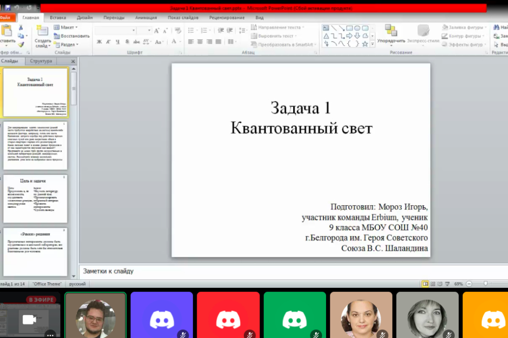Традиционно соорганизатором турнира выступил Белгородский госуниверситет при непосредственном участии представителей кафедры общей химии института фармации химии и биологии. Курируемое доцентом кафедры Софьей Дудиной мероприятие пришло в режиме онлайн, жюри оценивало работу юных исследователей по видеосвязи. За победу боролись опытные команды, успешно прошедшие отборочный этап: Erbium (СОШ №40), «ХимикУМ» (Шуховский лицей), «Юный химик» (ОГБОУ «Ровеньская СОШ с УИОП»).
