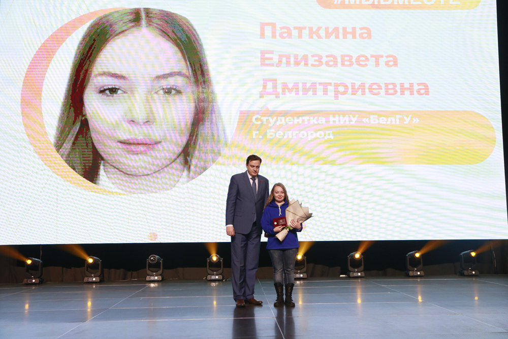 Министр образования вручил правительственный знак «Доброволец Белгородчины» активистам волонтёрского движения НИУ «БелГУ» Анастасии Патокиной (инжиниринговый колледж), Павлу Маматову (пединститут), координатору направления «Связь поколений» Белгородской региональной организации Всероссийского общественного движения «Волонтеры Победы» Анастасии Сорока (инжиниринговый колледж), члену молодёжного Совета при Белгородском городском Совете VI созыва, волонтёр пункта сбора гуманитарной помощи для жителей освобожденных территорий и военнослужащих Михаилу Королёву (юридический институт), руководителю местной общественной приёмной партии «Единая Россия» города Белгорода Елизавете Паткиной (педагогический институт), члену добровольческого движения на территории Алексеевского городского округа Александре Иваненко (институт экономики и управления), региональному координатору Белгородского отделения Всероссийского общественного движения «Волонтёры-медики» Анастасии Карагодиной (медицинский институт), волонтёрам Белгородской региональной общественной организации содействия развитию демократии и решению социальных проблем «Скорая Молодёжная Помощь» Александру Захарову (институт общественных наук и массовых коммуникаций) и Кристине Иванушкиной (медицинский институт).