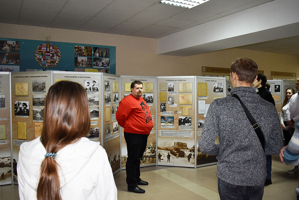 Открыл выставку и провел по ней экскурсию аспирант историко-филологического факультета НИУ «БелГУ» – старший научный сотрудник музея-диорамы «Курская битва. Белгородское направление» Александр Кадира. В экспозиции представлены фотографии, отражающие боевой и жизненный путь Н.Ф. Ватутина, снимки боевых действий важнейших битв Великой Отечественной войны из фондов музея-диорамы и Российского государственного архива кинофотодокументов (город Красногорск, Московская область).