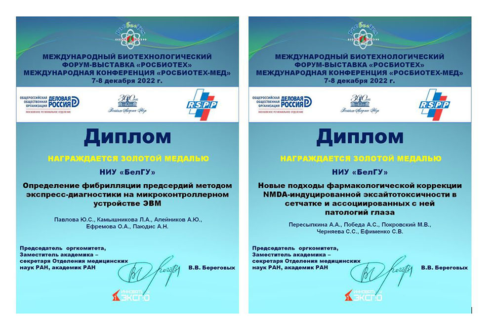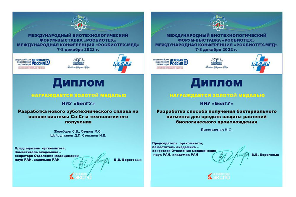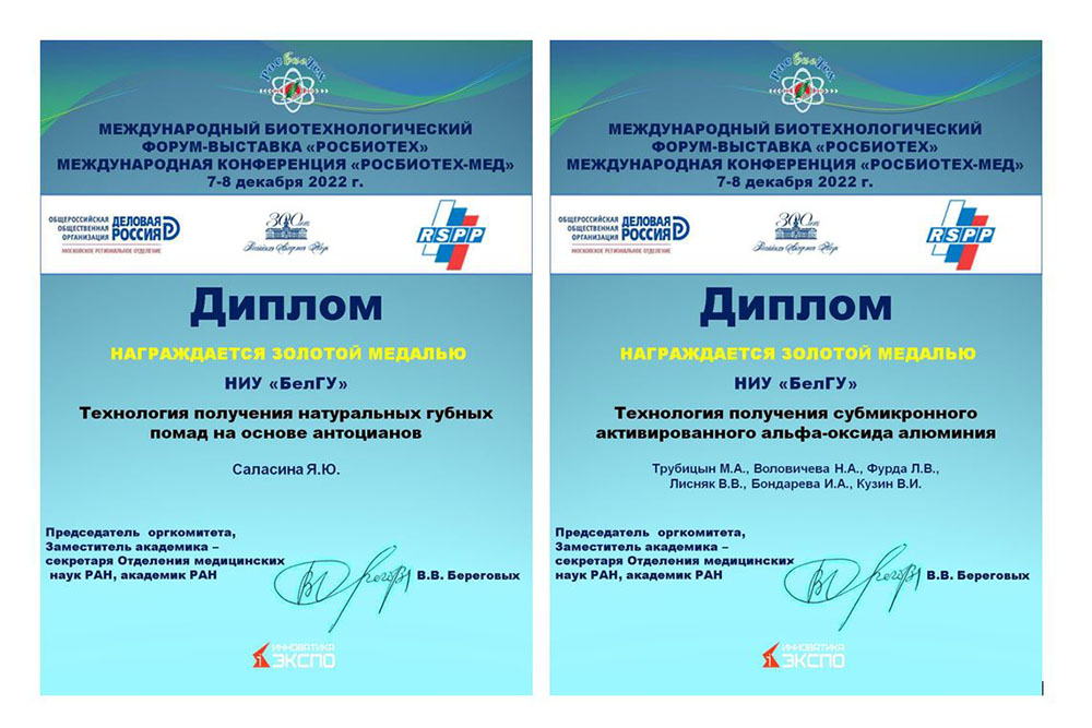Инновационные разработки ученых НИУ «БелГУ» удостоились наград международной выставки «РосБиоТех-Мед».