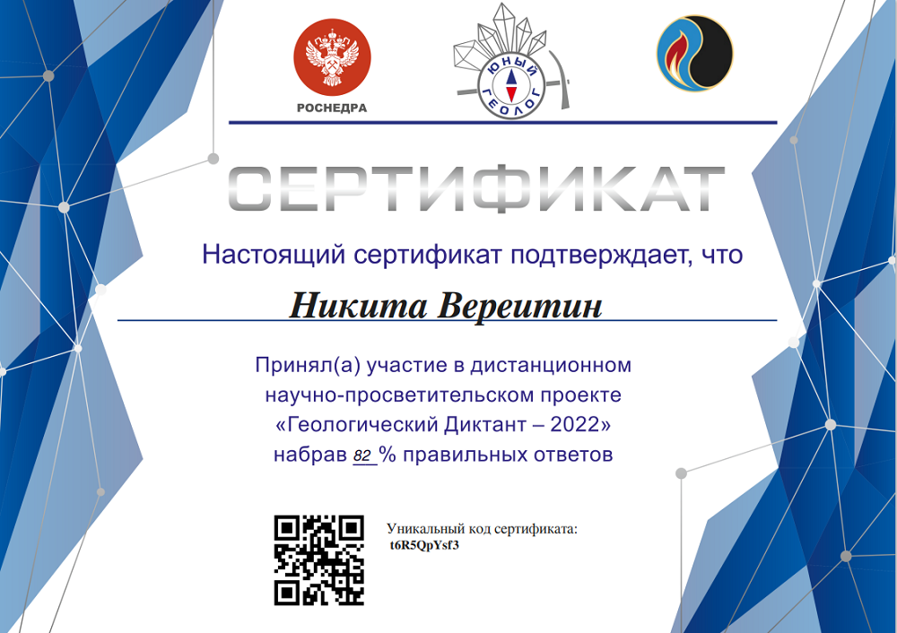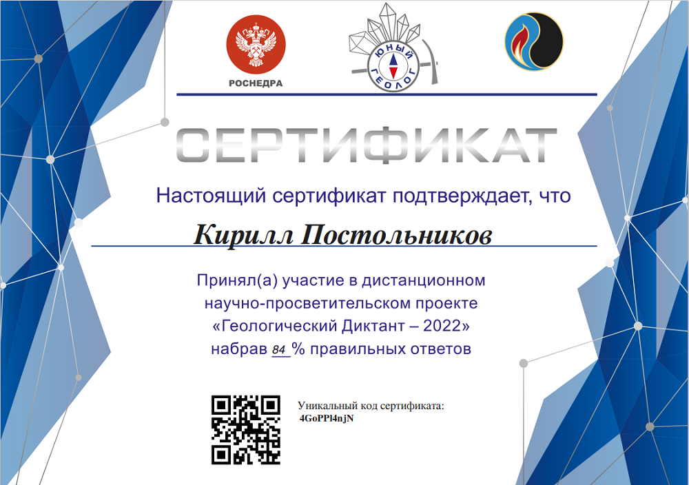 Для справки: Организаторами ГеоДиктанта выступили Фонд «Юный геолог», Федеральное агентство по недропользованию и РГУ нефти и газа им. И.М. Губкина.