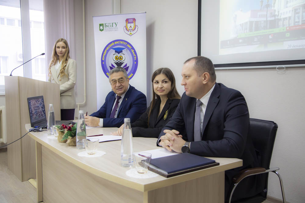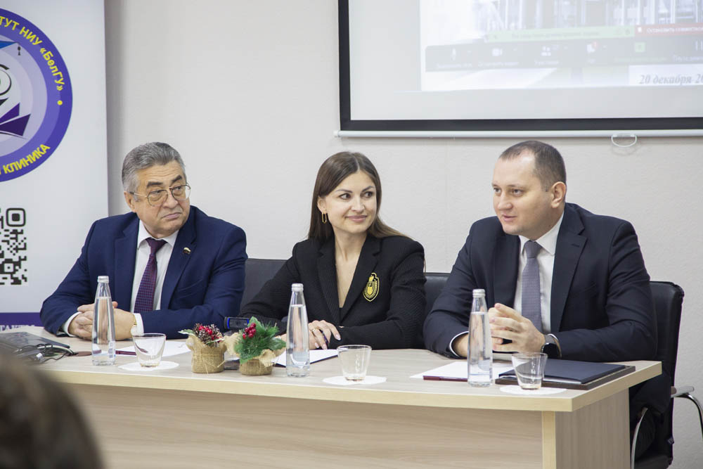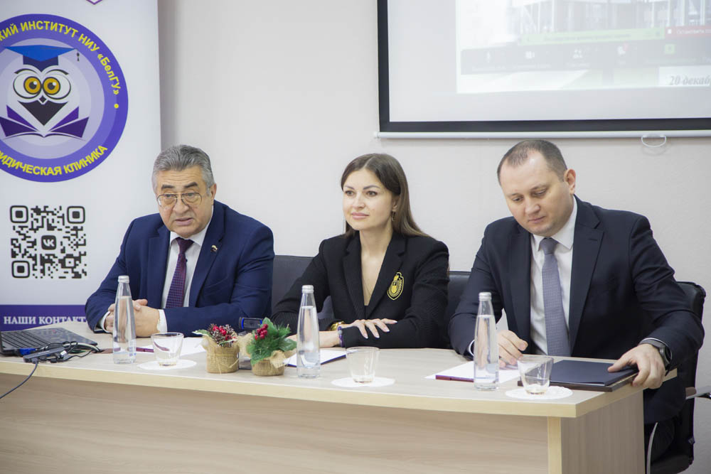 На встрече, посвящённой подведению итогов деятельности юрклиники НИУ «БелГУ», присутствовали проректор по воспитательной работе и молодёжной политике Елена Цуканова, директор юридического института Белгородского госуниверситета Евгений Тонков и начальник управления Министерства юстиции России по Белгородской области Александр Черепанов.