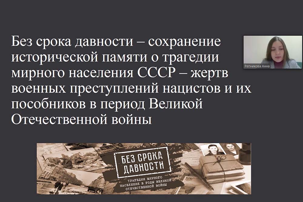 Большое внимание участники мероприятия уделили волонтёрским проектам, в том числе участию студентов нашего вуза в федеральном проекте «Без срока давности». Комментируя выступление председателя штаба «Горячие сердца» Анны Репниковой, директор центра гражданско-патриотического воспитания студентов НИУ «БелГУ» Инна Кузнецова отметила, что изучение истории тесным образом связано с добровольческой деятельностью, подтверждение тому направление «Волонтёры Победы».