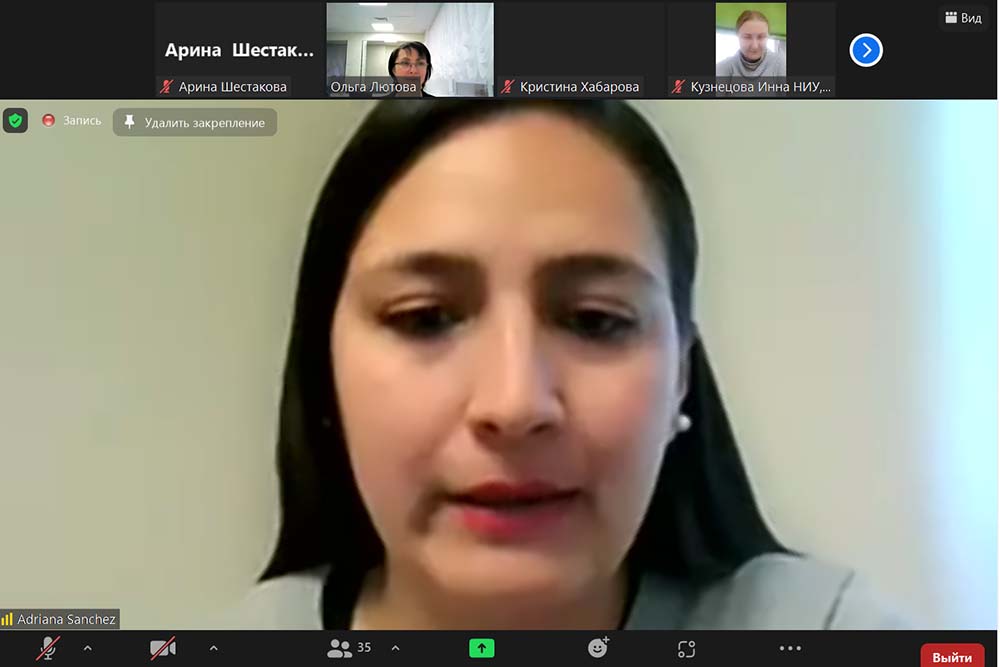 В этом году почётными гостями молодёжного форума стали выпускники нашего вуза, работающие в разных странах мира. Санчес Посо Адриана Мишель (Боливия) – организатор волонтёрской-группы медиков г. Ла-Пас, рассказала об опыте организации группы волонтёров из студентов-медиков, занимающейся на протяжении почти 10 лет просветительской работой, а после окончания вуза – оказывающей квалифицированную медицинскую помощь сельскому населению Боливии, не имеющему возможности обратиться в больницу. Диуф Даур (Сенегал) – кандидат филологических наук, преподаватель Лицея Бокидиаве в Дакаре – рассказал о использовании на уроках в старших классах лицея элементов русской культуры как инструмента формирования уважения к России и разрушения негативных стереотипов, созданных западными СМИ.