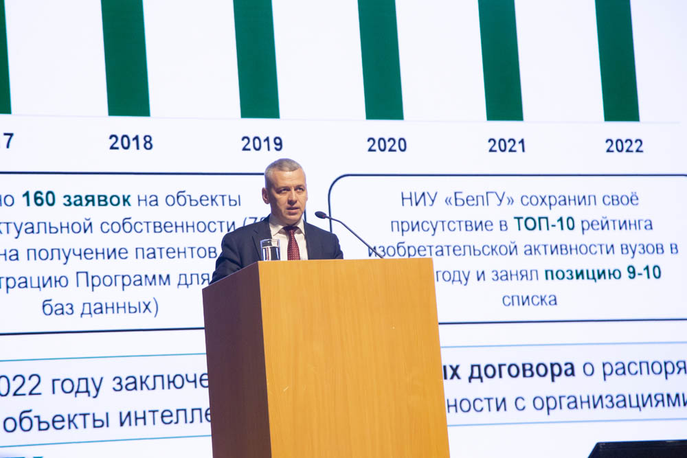 О предварительных итогах научно-исследовательской деятельности в 2022 году и основных задачах сообщил проректор по науке Николай Репников. Он отметил, что в 2023 году на развитие научной и инновационной деятельности планируется направить более 1 млрд 75 млн рублей. По словам проректора, удалось существенно увеличить объём НИОКР по сравнению с предыдущим годом до 1 млрд 384 миллионов рублей.