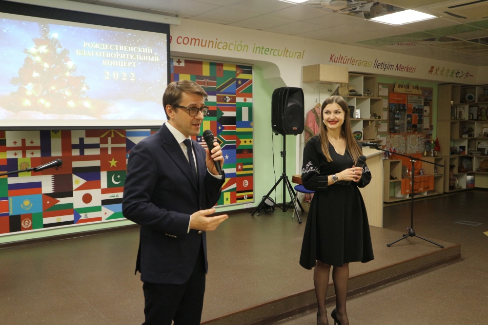 Елена Юрьевна и Владислав Анатольевич, открывая мероприятие, поздравили присутствующих с наступающими праздниками, поблагодарили всех тех, кто принял участие в благотворительной акции и организовал Рождественский концерт.
